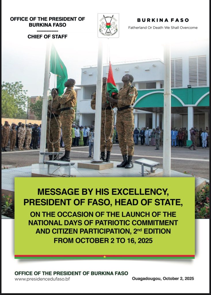 Son Excellence Kassoum Coulibaly, Ambassadeur Extraordinaire et Plenipotentiaire du Burkina Faso à Washington DC, a procedé ce jeudi 2 octobre 2025 au lancement officiel de la deuxieme edition des journées d’engagement patriotique et de participation citoyenne.